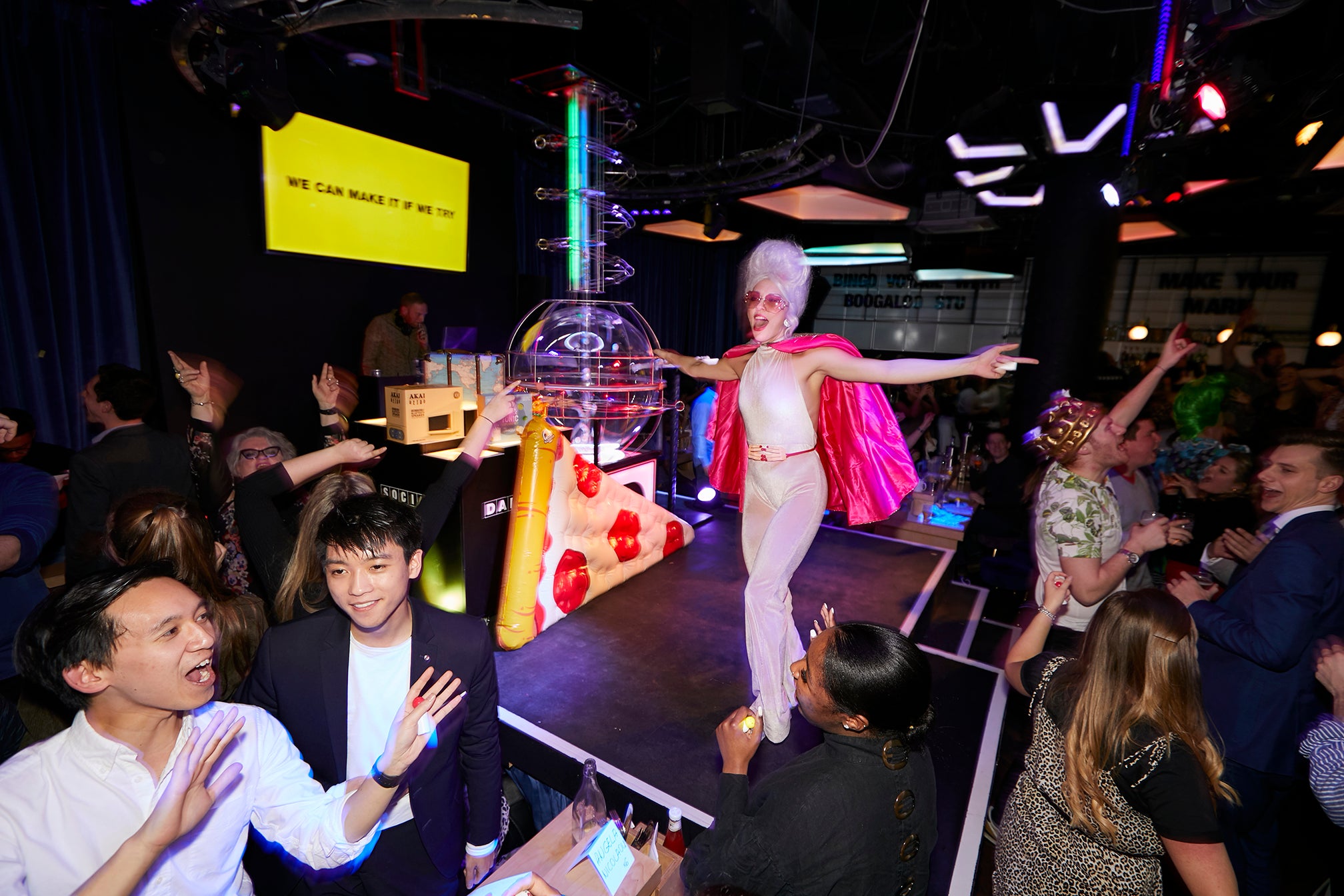 What’s a bingo hall without its bingo machine? Your next conference venue. Whether you’re launching a product or changing the world, our space offers the perfect platform. Follow your presentation, interview, awards night or company announcement with a game of Dabbers Bingo!
